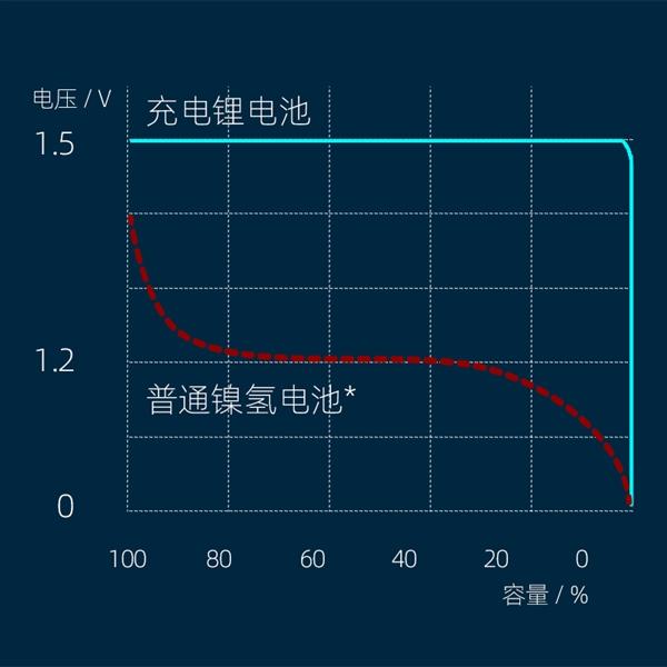 這款電池的優(yōu)點很多,首先是電壓穩(wěn)定。南孚Tenavolts 5號充電鋰電池的充放電更穩(wěn)定,與普通電池不同,它內(nèi)置了三芯合一控制器(鋰電專用保護板),可以維持全程1.5V恒壓放電,避免了充電過沖、欠壓過放的情況。